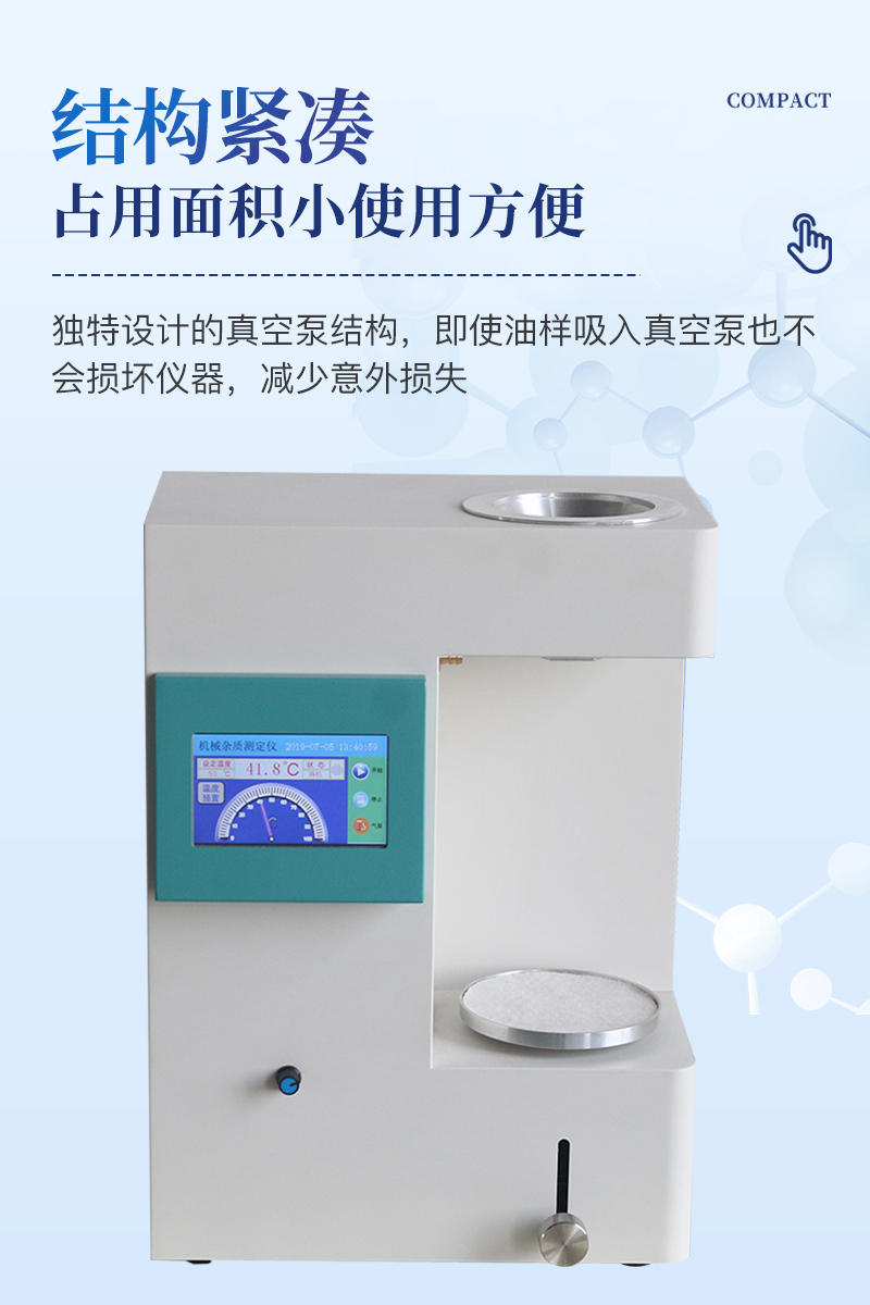 產(chǎn)品簡(jiǎn)介機(jī)械雜質(zhì)測(cè)定儀是按照GB/T 511-2010《石油和石油產(chǎn)品及添加劑機(jī)械雜質(zhì)測(cè)定法》設(shè)計(jì)和制造的。適用于測(cè)定石油產(chǎn)品中的各種烴、重質(zhì)油、潤(rùn)滑油及添加劑的機(jī)械雜質(zhì)含量。可廣泛應(yīng)用于電力、石油、化工、商檢及科研部門。內(nèi)置無油免維護(hù)真空泵,金屬浴恒溫漏斗,一臺(tái)儀器主機(jī)完成所有功能,無需外接真空泵和