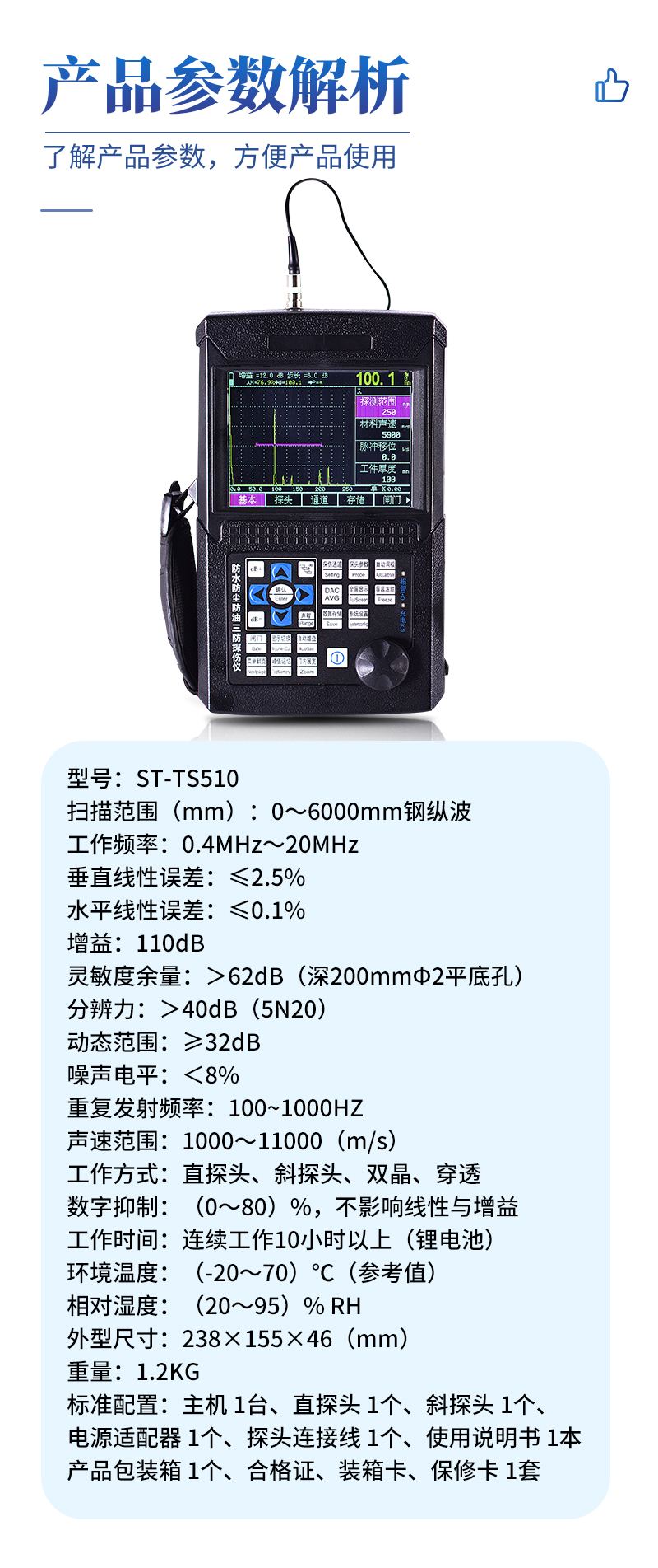 概述便攜式超聲波探傷儀能夠快速便捷、無損傷、準確地進行工件內部多種缺陷如裂紋、焊縫、氣孔、砂眼、夾雜、折疊等的檢測、定位、評估及診斷,廣泛應用于電力、石化、鍋爐壓力容器、鋼結構、航空航天、鐵路交通、汽車、機械等領域。它是檢測行業的重要儀器。主要功能● 高精良定量、定位,適合較近和較遠距