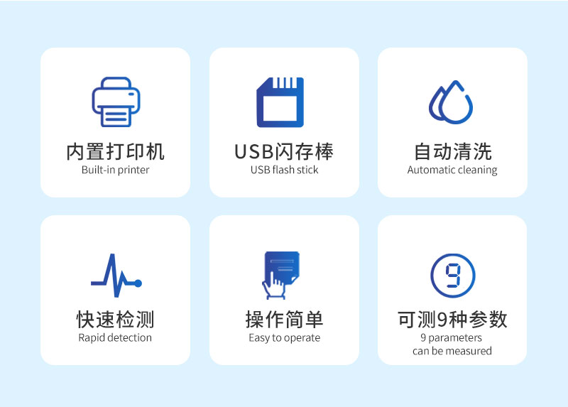 9、根據(jù)客戶要求選擇-電導(dǎo)率,內(nèi)置打印機,USB閃存棒,第二蠕動泵自動清洗,PH值。