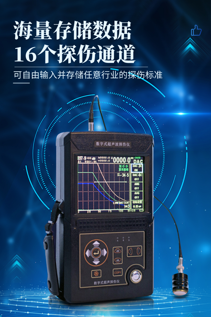 超聲波探傷儀器能夠便捷、準確地進行工件內部多種缺陷如裂紋、焊縫、氣孔、砂眼、夾雜、折疊等的檢測、定位、評估及診斷,廣泛應用于電力、石化、鍋爐壓力容器、鋼結構、航空航天、鐵路交通、汽車、機械等領域。它是無損檢測行業的儀器。主要功能● 自動校準探頭,不需要手動計算;● 利用標準試塊自動生成
