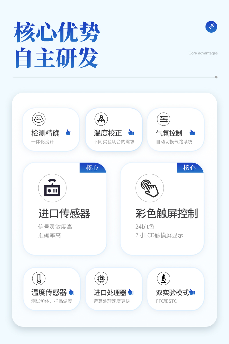 10、相互獨(dú)立的雙溫度傳感器,可以同時分別測試爐體溫度和樣品溫度。