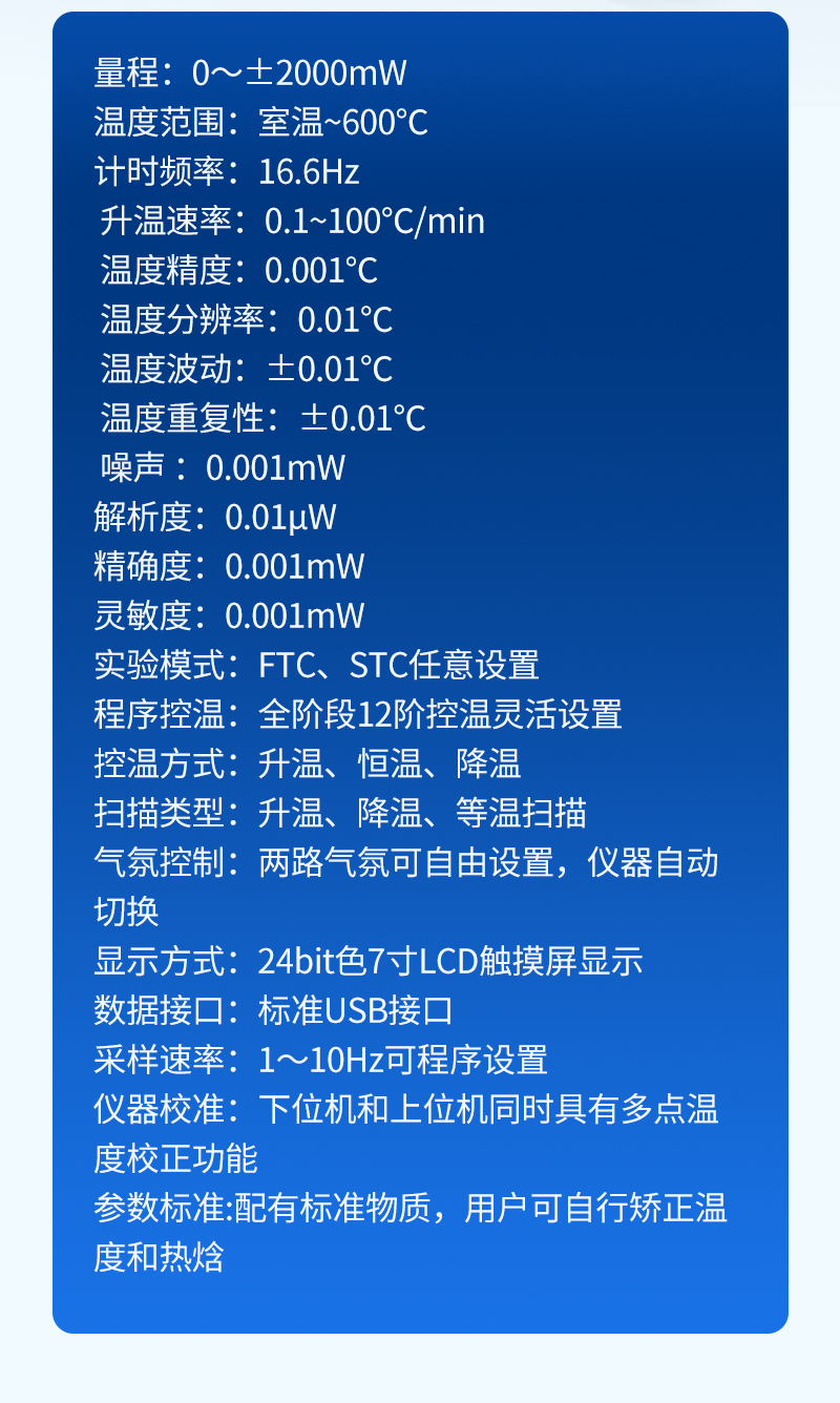3、采用進(jìn)口高靈敏度傳感器,有效提高了DSC信號的靈敏度和準(zhǔn)確率。