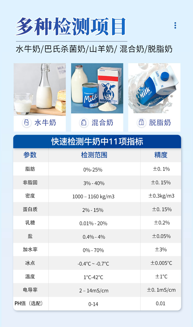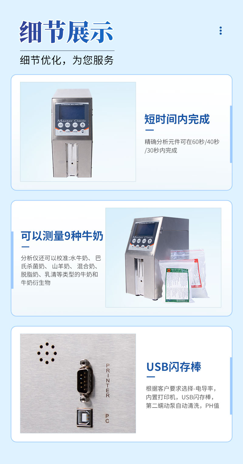 5、牛奶分析儀的標準校準適用于牛奶,羊奶,UHT。